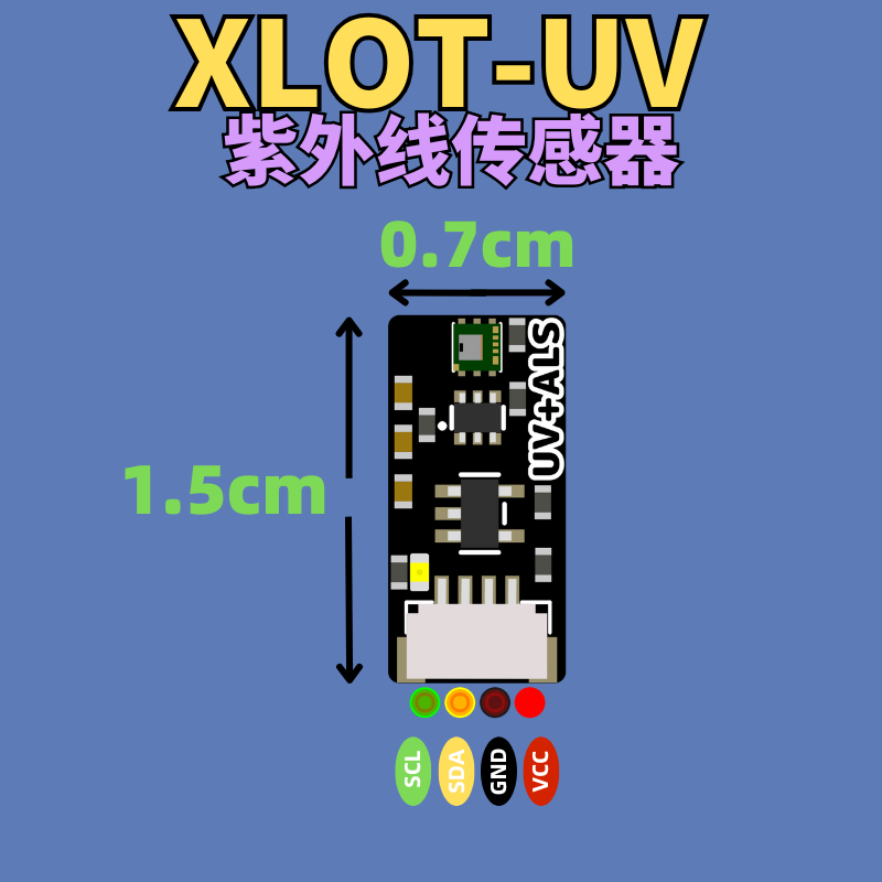 XLOT-UV Sensor 是一款高灵敏度的 UVA 与环境光检测模块,可同时测量紫外线(UV)强度与可见光亮度。它能帮助你的智能设备根据光照条件进行自动调节或提醒,是智慧穿戴、环境监测、艺术互动装置等项目的理想选择。