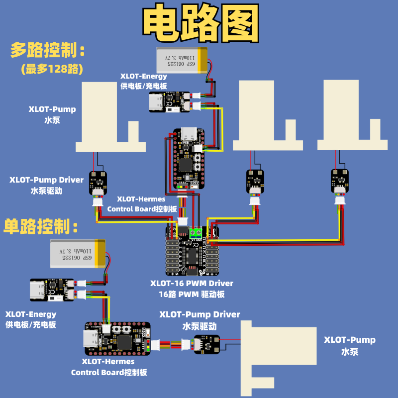 5.扩展能力: 支持连接 XLOT PWM 扩展板,实现多路水泵联动控制